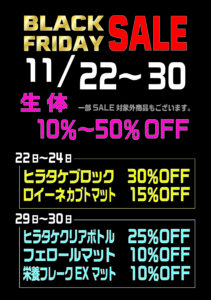 11月22日(土)〜11月30日(日)までの期間「ブラックフライデーセール」を開催いたします。