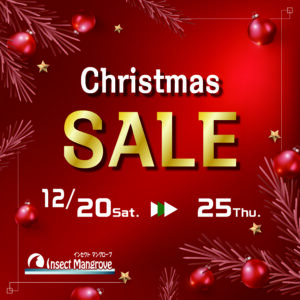 INFORMATION お知らせ 新着記事 2025.12.18 クリスマスセールのご案内 2025.12.01 臨時休業のお知らせ 2025.11.29 12月の営業案内 2025.11.16 ブラックフライデーSALEのご案内 2025.11.01 11月の営業案内 カテゴリ お知らせ 営業日時 ブログ 1号よもやま話 イベント カブトムシ クワガタ 店舗イベント 日常 昆虫マット 標本 飼育 アーカイブ 2025年12月 2025年11月 2025年10月 2025年9月 2025年8月 2025年7月 2025年6月 2025年5月 2025年4月 2025年3月 2025年2月 2025年1月 2025.12.18 お知らせ店舗イベント クリスマスセールのご案内 開催期間:12月20日(土)〜12月25日(木) 今年も残すところ2週間足らずとなりました。クリスマスも直前ですね! 虫好きの方やお子様へのクリスマスプレゼントに、もしくは1年頑張った自分へのご褒美プレゼントに 是非この機会をご利用ください。 成虫ペア 10%〜50%OFF 飼育マット・管理マット(ペレット含む) 全品10%OFF マットにつきましては、お一人様(1家族様)2袋までSGI naturalマットについては数に限りがあるあためお一人様(1家族様)1袋までとさせていただきます。(購入数に制限はありませんが、10%OFFでのご提供は上限数までさせていただきます。) 4,000円以上の生体ご購入で2026年オリジナルカレンダープレゼント! 本日より4,000円以上の幼虫ペア・成虫ペアご購入で、2026年オリジナルカレンダー進呈中です。 皆様のお越しをお待ちしております。